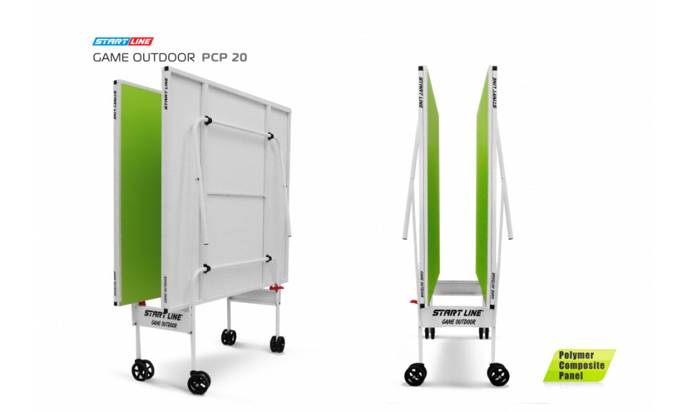 Игровое поле Polymer Composite Panel толщиной 20 мм – это собственная разработка Start Line. Преимущества Polymer Composite Panel PCP - Материал РСР абсолютно устойчив к атмосферным явлениям, стол может эксплуатироваться на открытых площадках от -25°С до 43;35°С и высокой влажности. Панель РСР дает хороший отскок 21 см и сохраняет высокие игровые характеристики при длительном использовании на открытых площадках. Конструкция стола с панелью PCP имеет усиленную раму, которая задает дополнительную жесткость столу, закрепляет игровое поле и исключает "эффект барабана". Кромка столешницы толщиной 1 мм вместо стандартной 0,45 мм надежно защищает торец от повреждений.