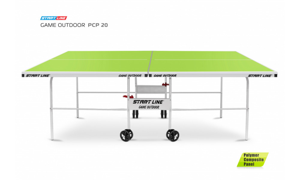 Новой моделью с новой столешницей PCP 20 мм стал теннисный стол Game Outdoor PCP 20. Это универсальный вариант всепогодного стола. Маневренность достигается за счет двойных обрезиненных роликов, модель легко перемещать. Конструкция предусматривает компактную систему трансформации и продумана таким образом, чтобы использовать его мог даже один человек.